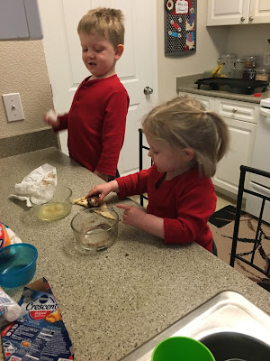 Jaxson didn't like rolling the marshmallow in the butter, but Kiah didn't mind the messiness :)